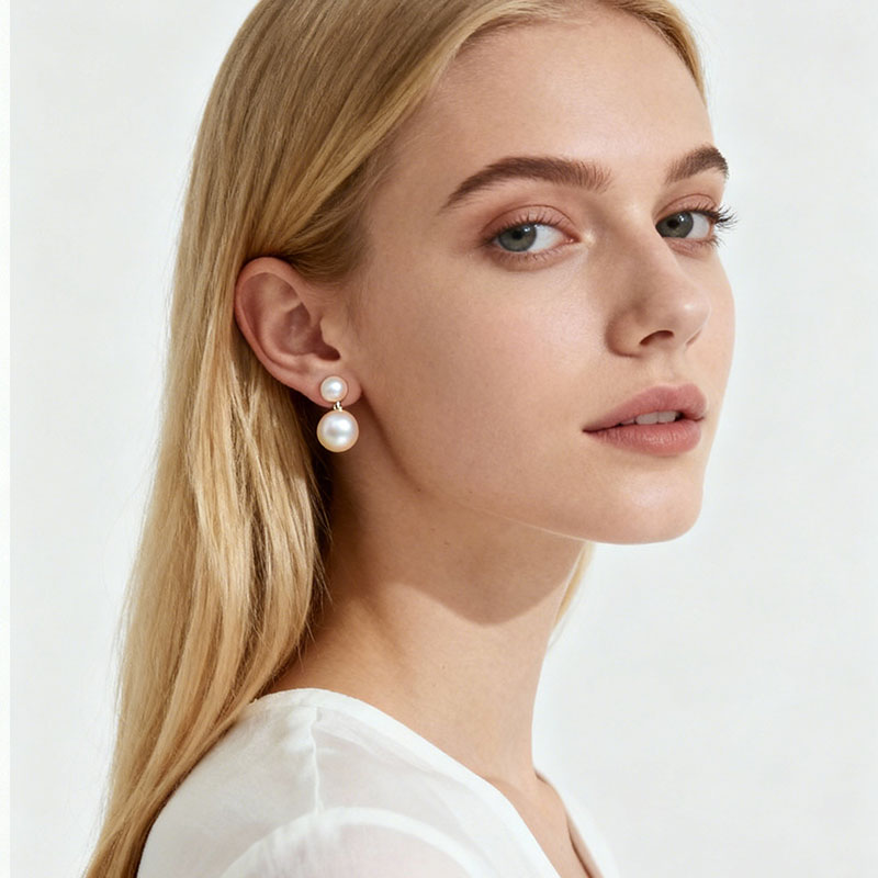 Basic style earrings made of selected round freshwater pearls. The pearls have a smooth luster and uniform size, paired with 925 silver pins that are hypoallergenic. The minimalist design balances elegance and daily wear, suitable for workplace, banquets, casual and other scenarios.